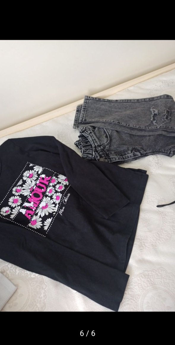 Kız Çocuk Siyah Payetli ı Uzun Kollu Tişört ve kot pantolon