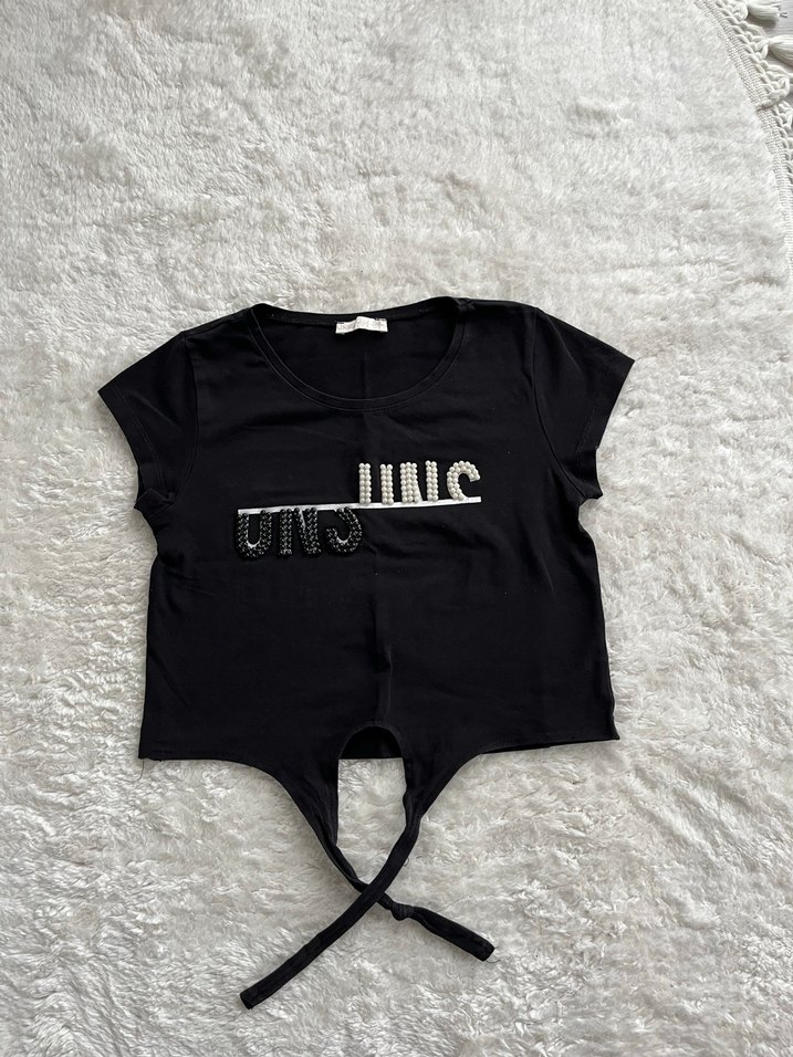 Kız Çocuk Siyah Payetli Kısa Kollu Tişört