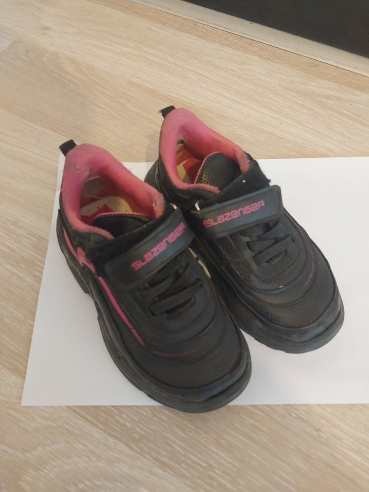Siyah ve pembe renklerde, cırt cırtlı kapamalı, kauçuk tabanlı, rock punk tarzı sokak modası kız çocuk spor ayakkabısı. Desensiz.