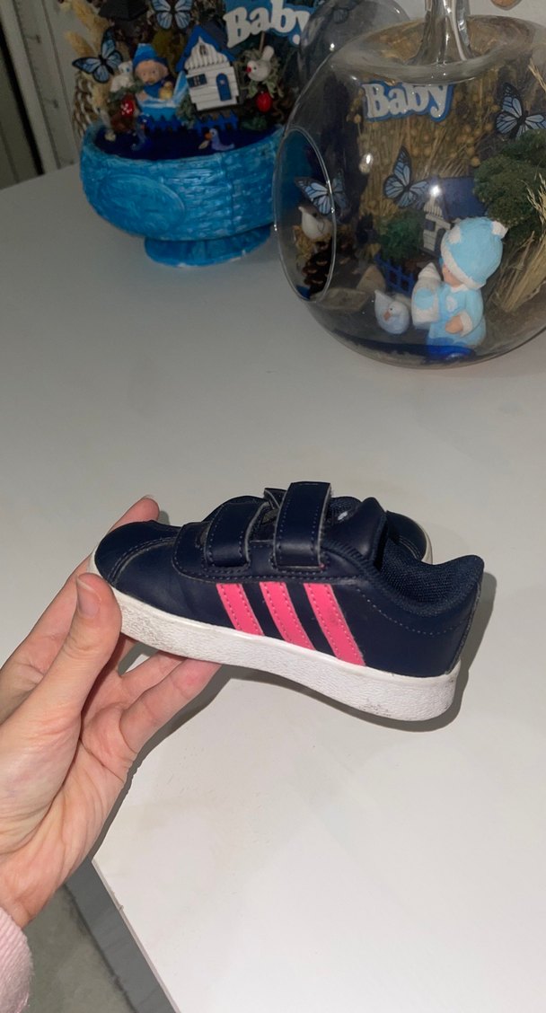 Siyah renkli, pembe şerit detaylı, cırt cırtlı ve kauçuk tabanlı kız çocuk spor ayakkabısı.