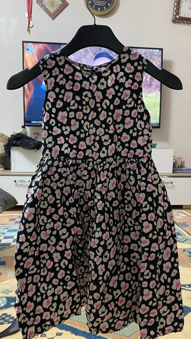 Kız Çocuk Siyah Pembe Desenli Kolsuz Elbise