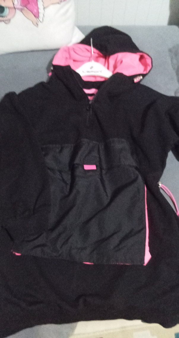 Kız çocukları için kapşonlu fermuarlı ve bol kesim siyah-pembe renkte tunik elbise Rahat ve sıcak tutan kumaştan, günlük sokak stili için uygun.
