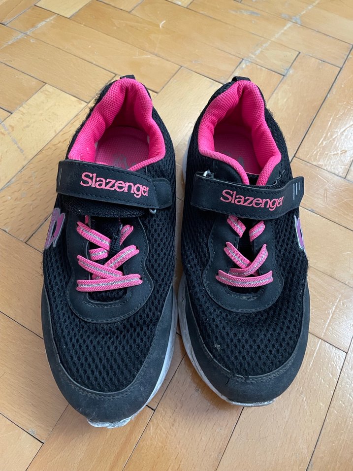 Slazenger marka, koyu renkli siyah-pembe kız çocuk spor ayakkabısı. Cırt cırtlı, kauçuk tabanlı, rahat ve kullanışlıdır. Sokak modasına uygun tarz sunar.