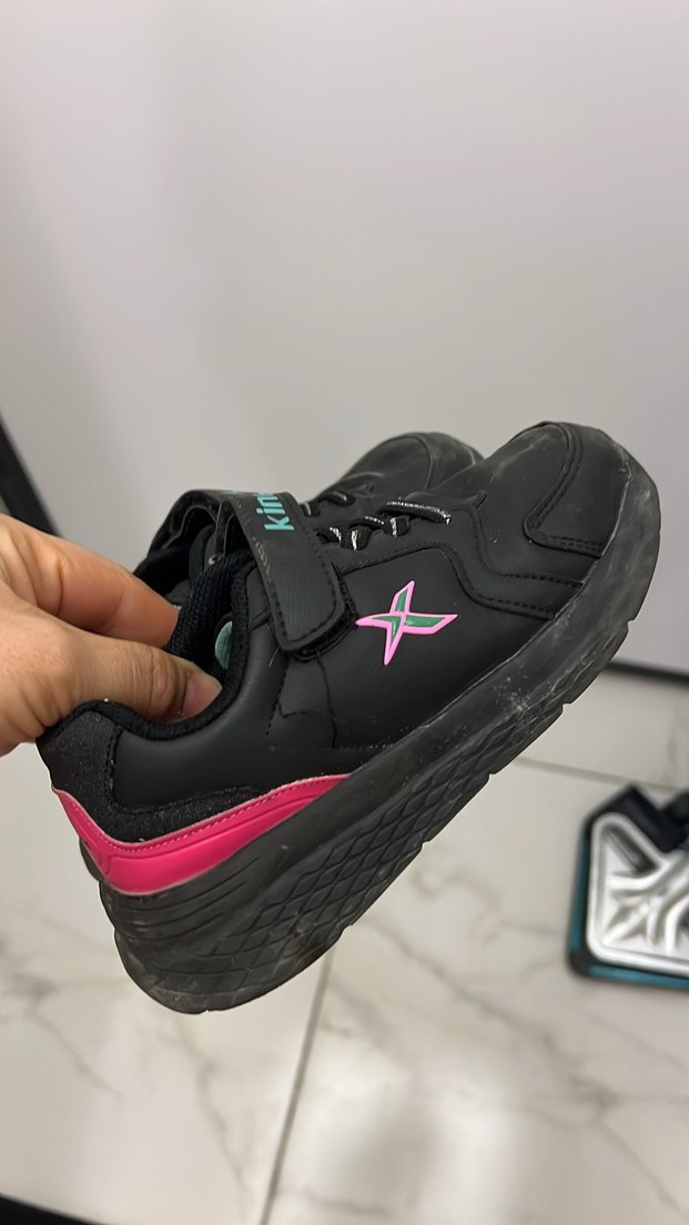Siyah ve pembe renklerde, lastik tabanlı, cırt cırtlı kız çocuk spor ayakkabısı. Renkli ve punk esintili, sade tasarımlı streetwear tarzı. 3 lu fiyat