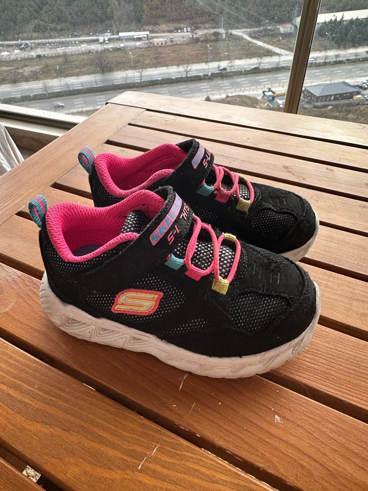 Renkli, pembe ve siyah renkte, cırt cırtlı kız çocuk spor ayakkabıs.