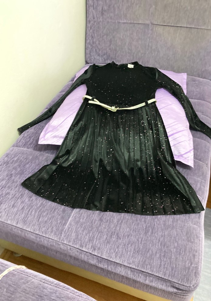 Kız Çocuk Siyah Piliseli Uzun Kollu Elbise