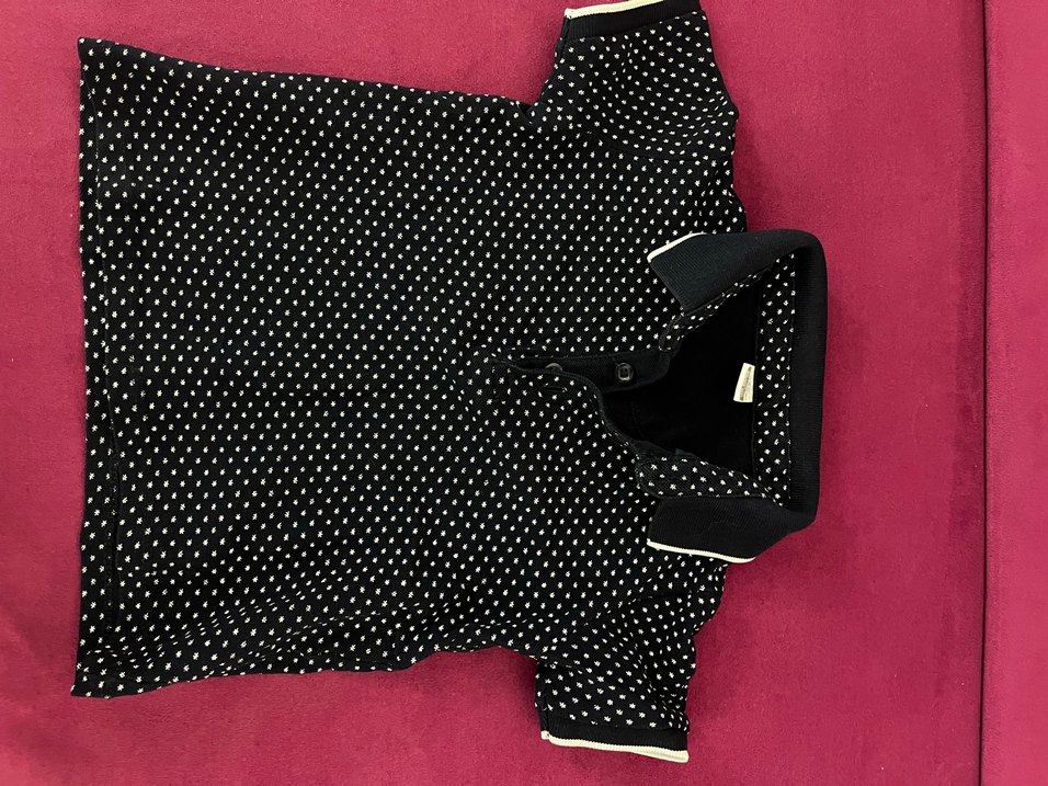 Kısa kollu, yakalı ve düğmeli ön kısmı olan kız çocuk polo tişörtü. Siyah zemin üzerinde beyaz puantiyeli, sentetik yumuşak kumaştan üretilmiştir. Sokak stiline uygun.