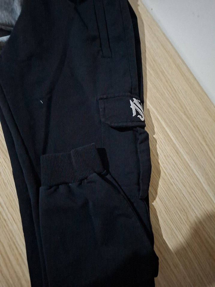 kız çocuklar için siyah eşofman altı, rahat kesim ve yumuşak sıcak kumaş ile Velcro cep detayı sunar, sokak stili için uygun.