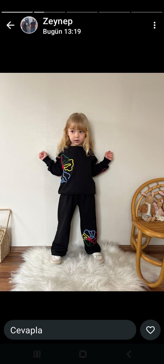 Siyah renk, salaş kesim kız çocuk eşofman takımı; nakis islemeli