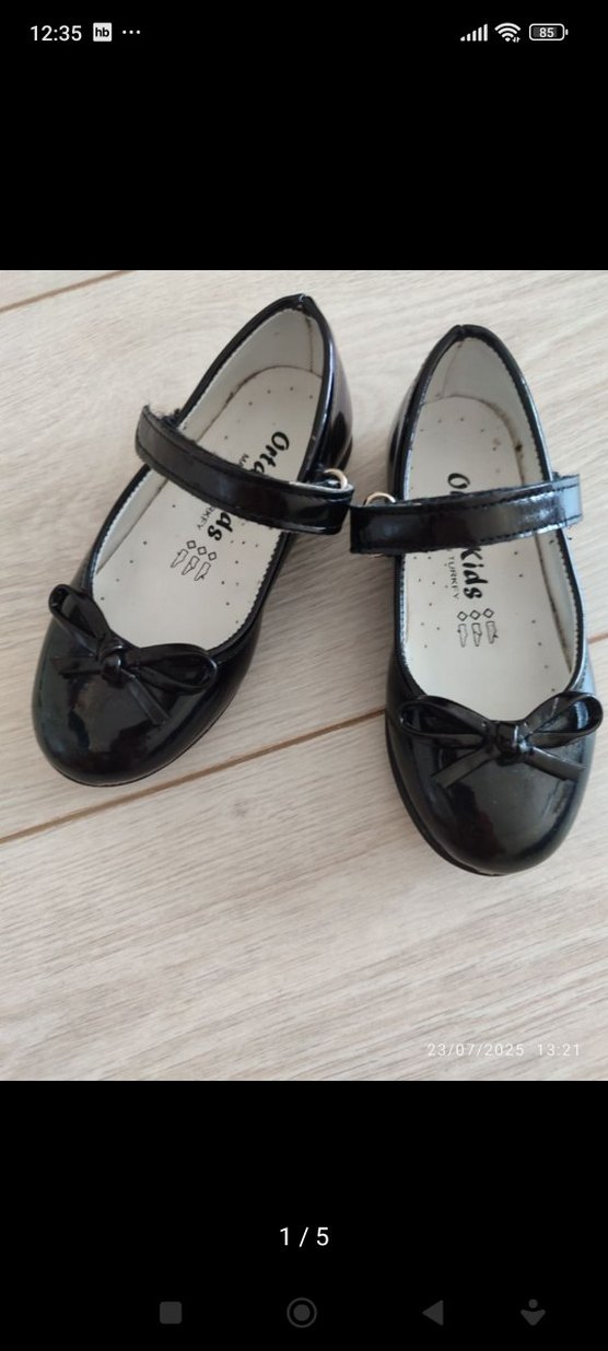Siyah rugan görünümlü kauçuk kız çocuk babet, tokalı kayış ve fiyonk detaylı, desensiz tasarım.evde bir defa giyildi. yeniden farkı yok. yenisi 650 lira floda