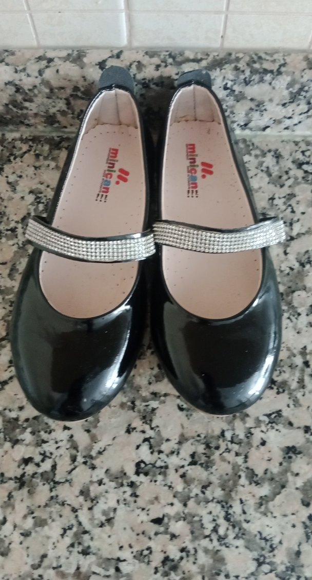 Kız Çocuk Siyah Rugan Babet Kristal Tokalı