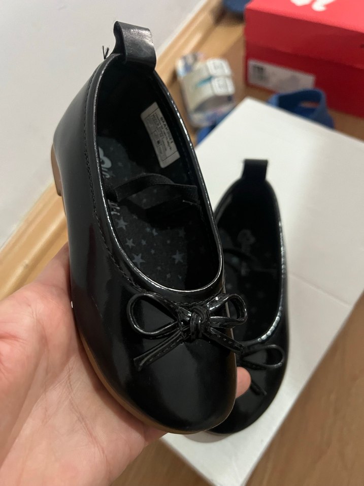 Kız çocukları için siyah rugan görünümlü, fiyonk detaylı babetler. Klasik şıklık ve gotik tarzı bir arada sunar. Rahat ve parlak yüzeyli. 1 kere düğünde giydi bi daha giyilmedi