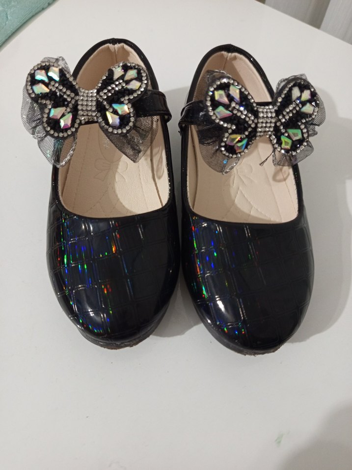 Kız çocukları için siyah rugan babet, renkli holografik desenli ve büyük taşlı fiyonklu detaylarla süslenmiştir. Şık ve benzersiz bir model. ürün dubai'den alınmış. 1 kere giyilmiş ama çocuğun ayağına olmadığı için hemen çıkarmış. isteyene ölçü verebilirim