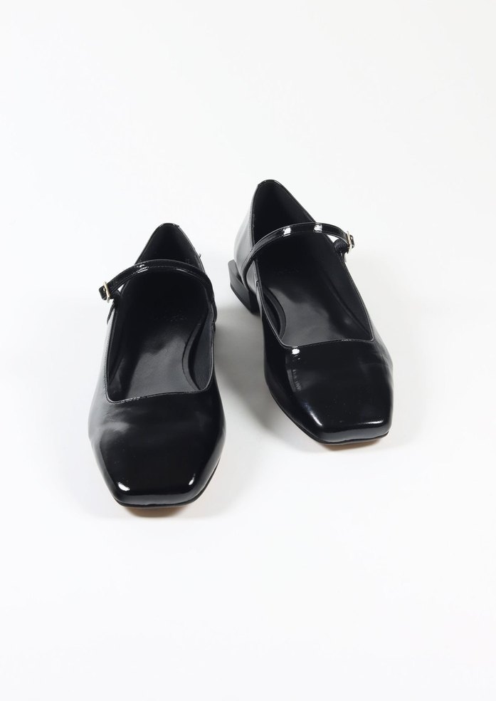 siyah rugan görünümlü, tokalı bantlı, goth tarzında babet ayakkabı. Parlak ve sade tasarıma sahip. Fiyatı 350,00 TL. Alındı