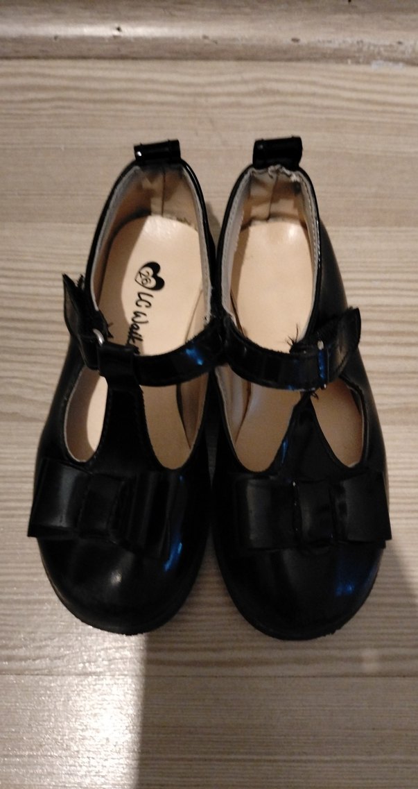 Siyah rugan görünümlü kız çocuk babetleri, tokalı bantlı ve sade tasarımlı, kauçuk malzemeden üretilmiştir.