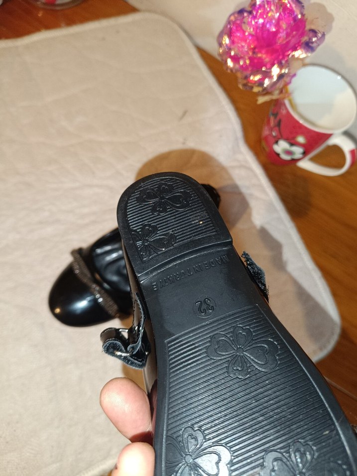 Kız çocuklar için siyah rugan tokalı babet ayakkabılar. Koyu goth tarzında, sade ve desen içermeyen tasarıma sahiptir.