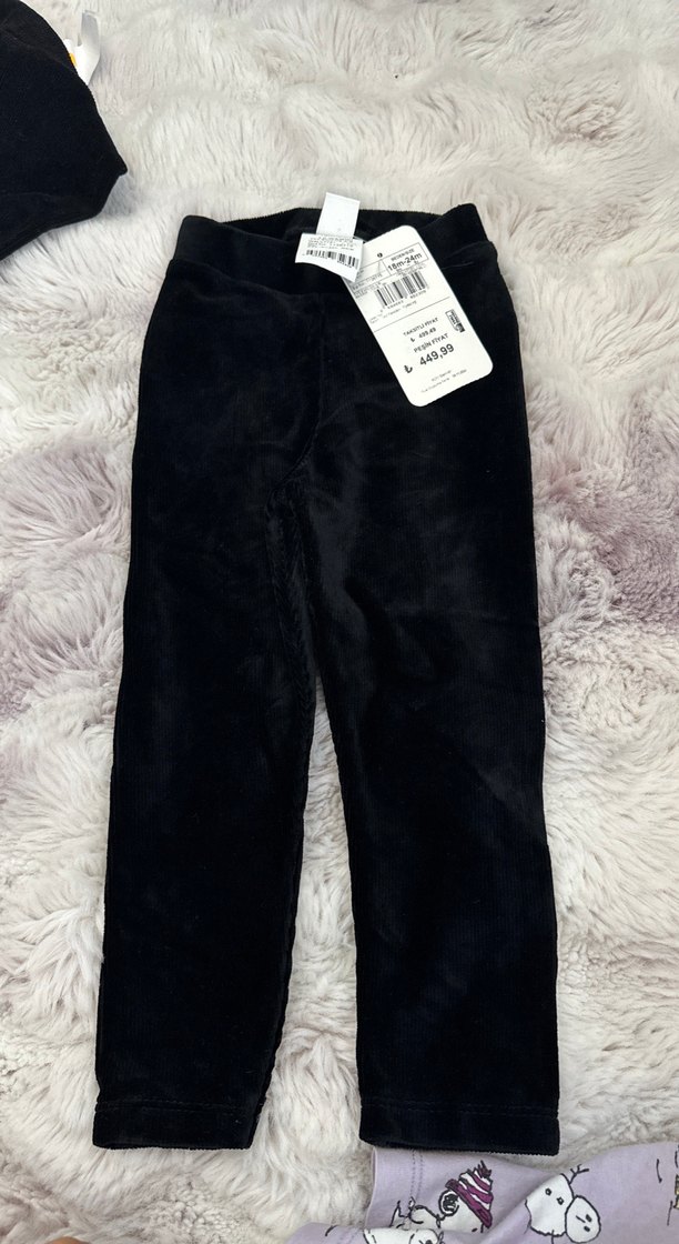 Kız çocukları için siyah, sıkı kesim, yumuşak ve sıcak kumaştan, kürk detaylı tayt.
