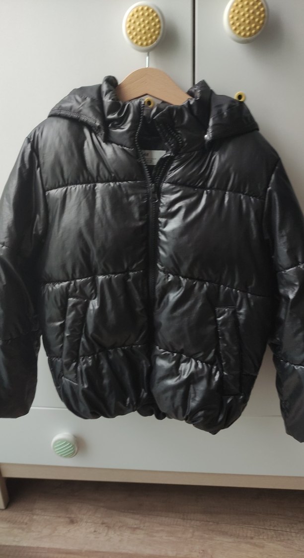 Kız çocukları için siyah şişme, fitted kesim ceket. Notched lapel yakalı, sokak stili ve yumuşak, sıcak kumaştan üretilmiştir.