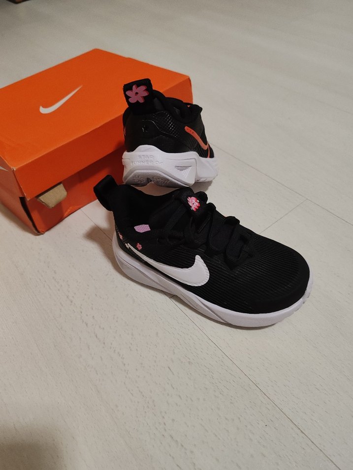 Beyaz tabanlı, baskılı detaylı siyah kız çocuk spor ayakkabısı, Velcro kapamalı ve rahat sokak stili için uygun.