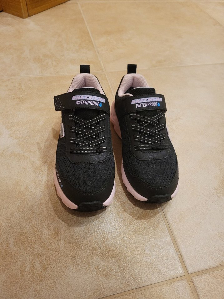 kiz çocuklar için siyah spor ayakkabı, kauçuk tabanlı ve Velcro bantlı. Street wear tarzında, su geçirmez ve desensiz tasarımıyla rahat. 19cm / 30numara. amerikadan kizim icin aldim ama kucuk geldi, hic giyilmedi.