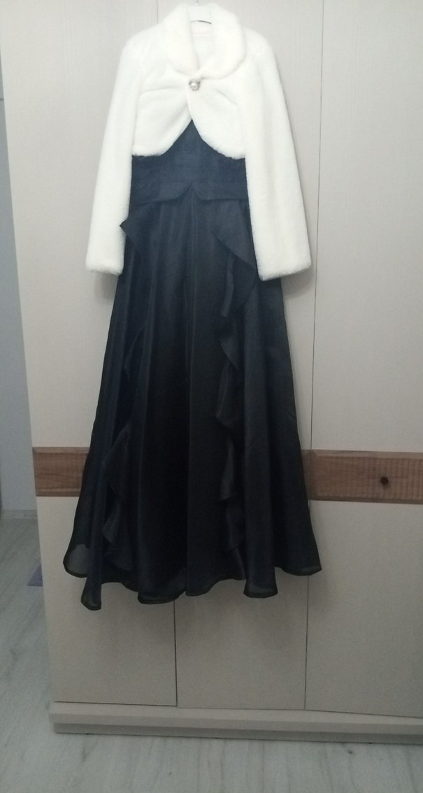 Diger marka siyah kız çocuk bolero, straplez yaka ve fırfır detaylara sahip. Sentetik kumaştan, bol kesim ve kolsuz tasarımda, gotik klasik şıklık için uygun.