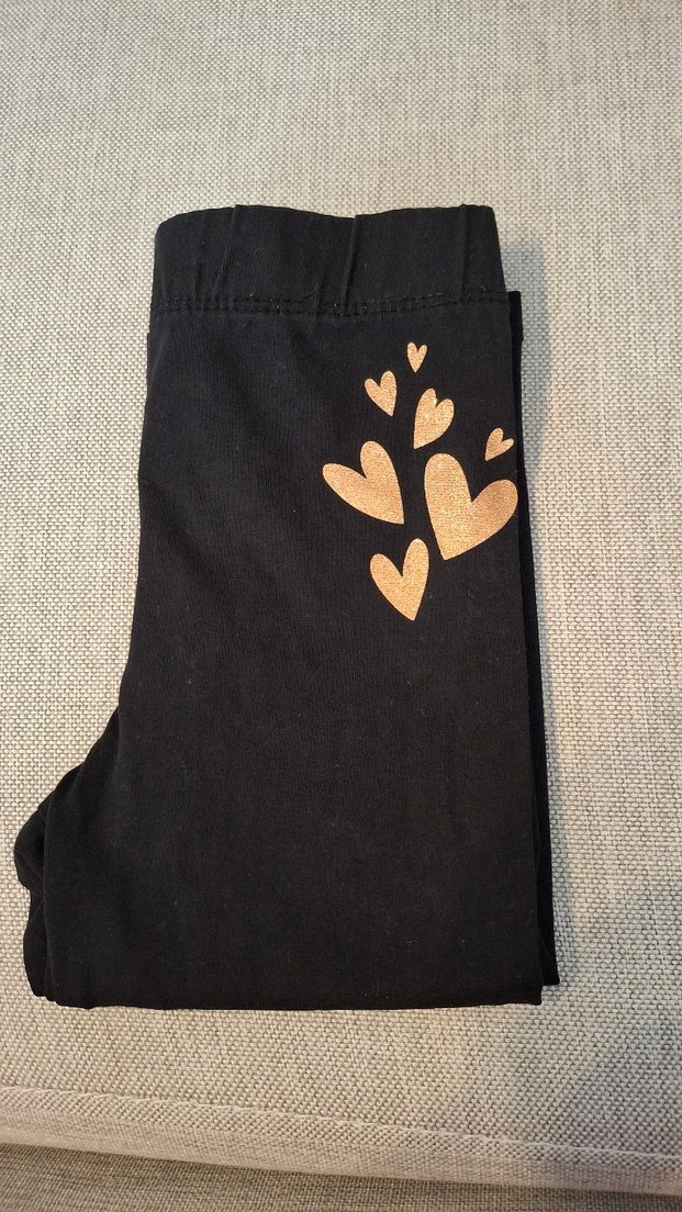 Siyah süet kumaştan, baskılı kalp desenli ve cırt cırtlı, kız çocukları için dar kesim tayt.