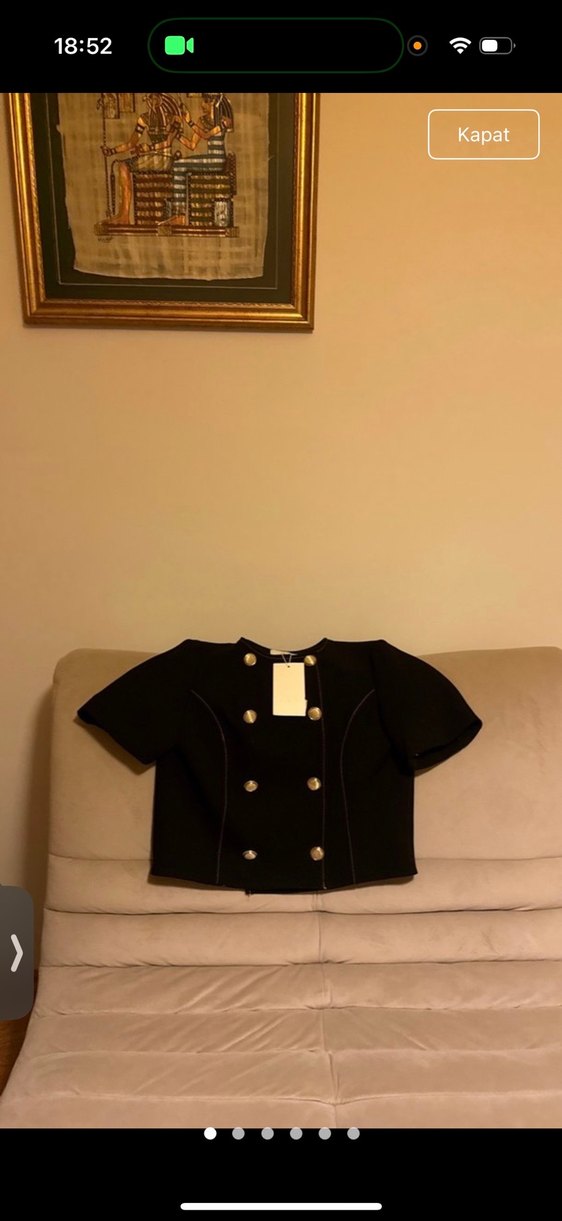 ETİKETLİ,Düğmeli, kısa kollu, bisiklet yaka, siyah mini kadın ceket. İnce kesimiyle günlük şıklık için uygun, trend sokak stili uyumlu.harika bir ceket stokları bitti kaçırmayın