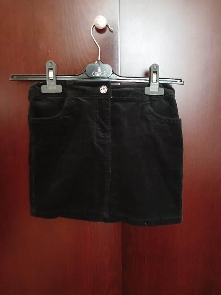 Kemer detaylı, siyah süet kumaştan yapılmış, düz ve fitted kesime sahip kız çocuk mini eteği.