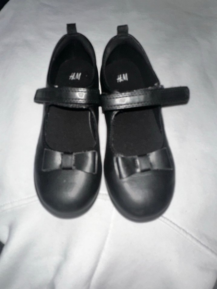 Siyah renkte, tokalı bant ve fiyonk detaylı kız çocuk babetleri. Kauçuk malzemeden yapılmış, sade ve desensiz.
