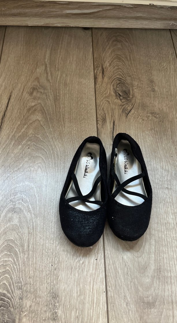 Siyah tokalı, düz ve gotik tarzda kız çocuk babet ayakkabısı. Esnek kauçuk malzemeden yapılmıştır, desensiz yüzeye sahiptir.