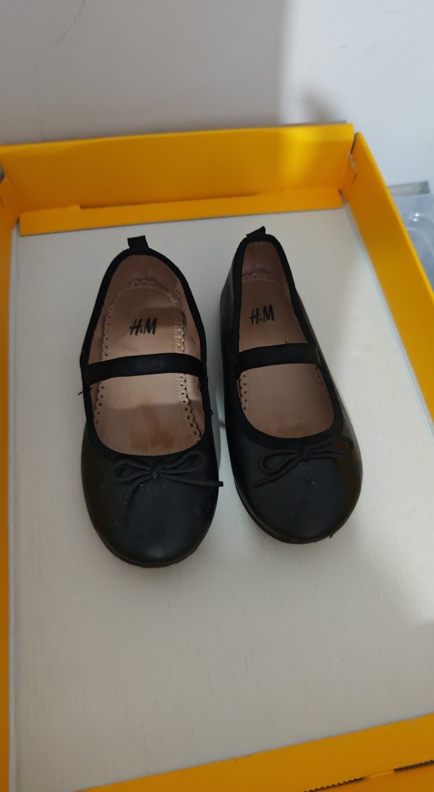 H&M markalı, tokalı, düz ve desensiz siyah kız çocuk babet ayakkabısı, kauçuk malzemeden üretilmiştir.