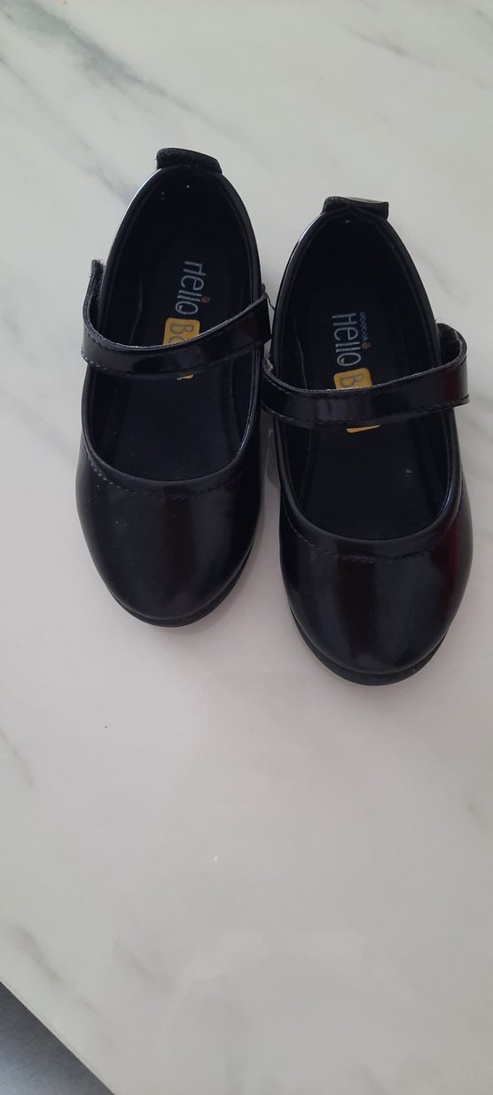 Kız çocukları için siyah tokalı, lastik malzemeden yapılmış, desensiz ve gotik tarzda babet ayakkabılar. 1 defa giyildi