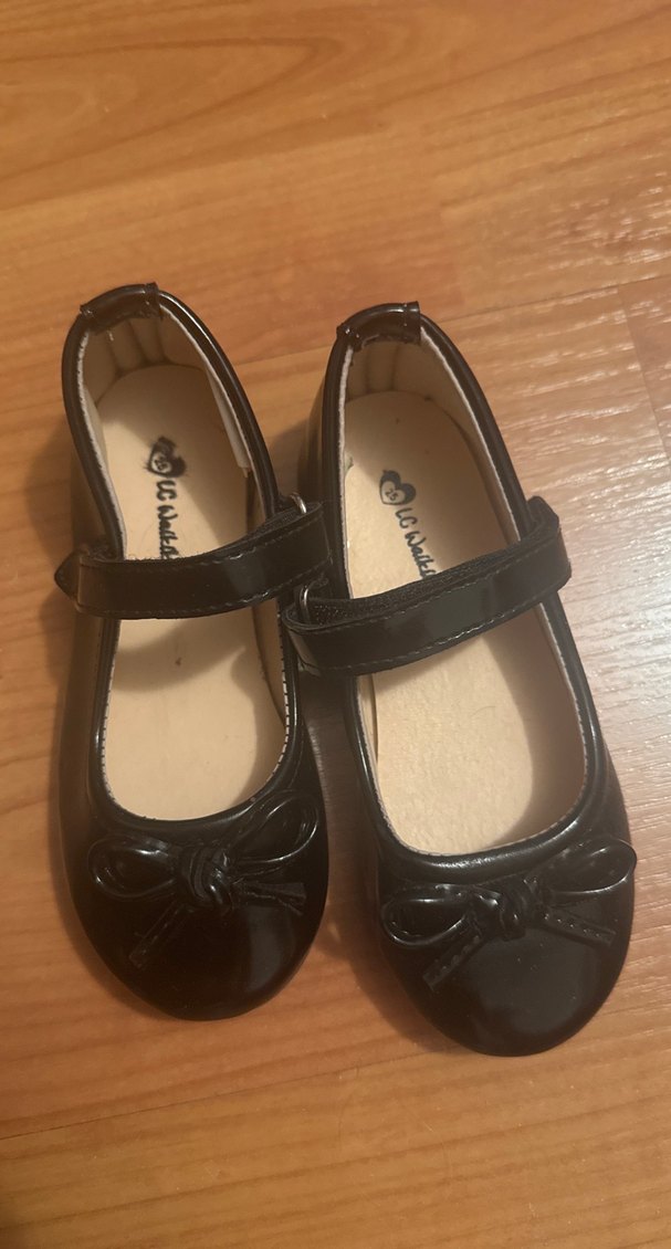 Siyah tokalı bant ve küçük fiyonk detaylı kız çocuk babet ayakkabısı, dayanıklı kauçuk malzemeden üretilmiştir. 1 kez giyildi
