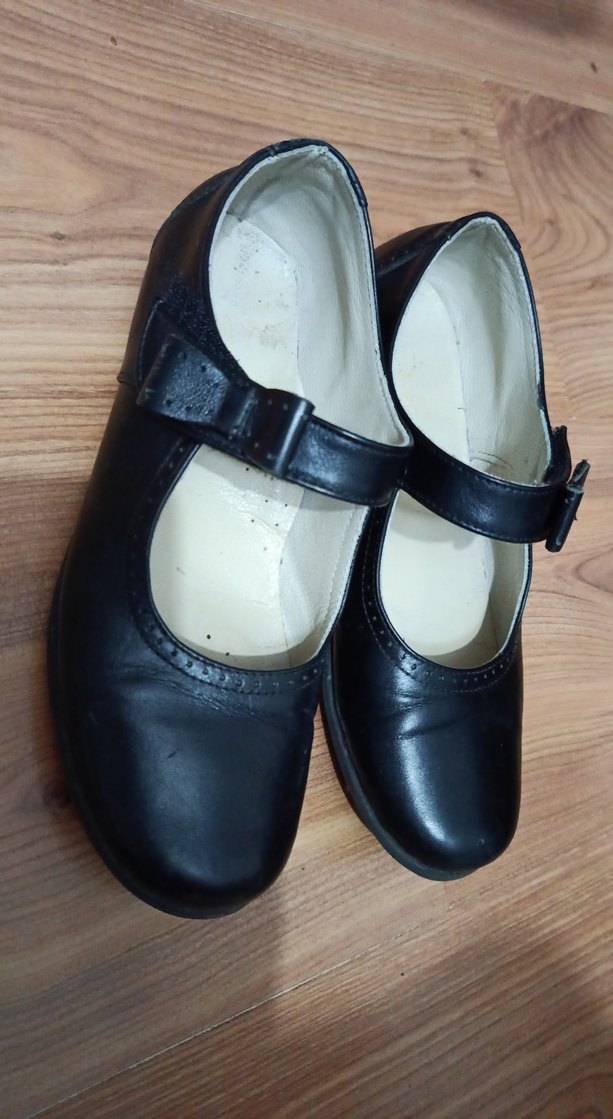 Siyah, tokalı kız çocuk bale ayakkabısı, lastik malzemeden ve sade gotik tarzda. Biraz kullanılmış ama işlevsel.