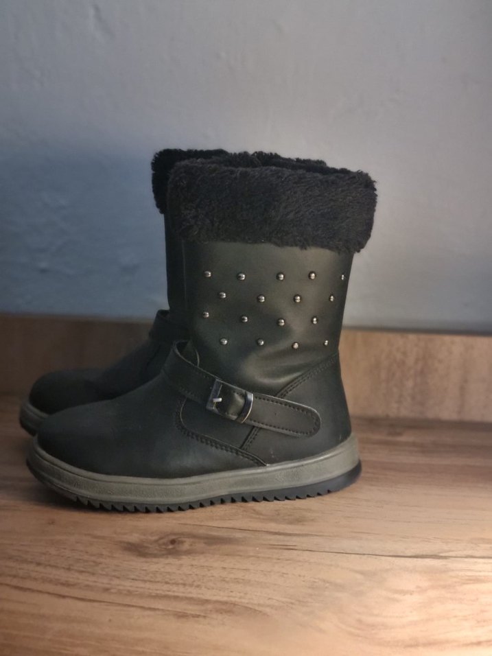 Kız çocukları için tokalı siyah kauçuk botlar, yumuşak kürk astar ve gotik tarzda tasarlanmıştır. Dayanıklı taban ve perçin detaylara sahiptir.29 no
