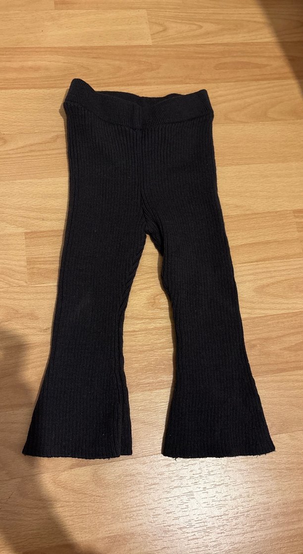 Kız çocukları için siyah, triko kumaştan yapılmış, düz ve desensiz, vücuda oturan tayt. Rahat ve normcore tarzda.
