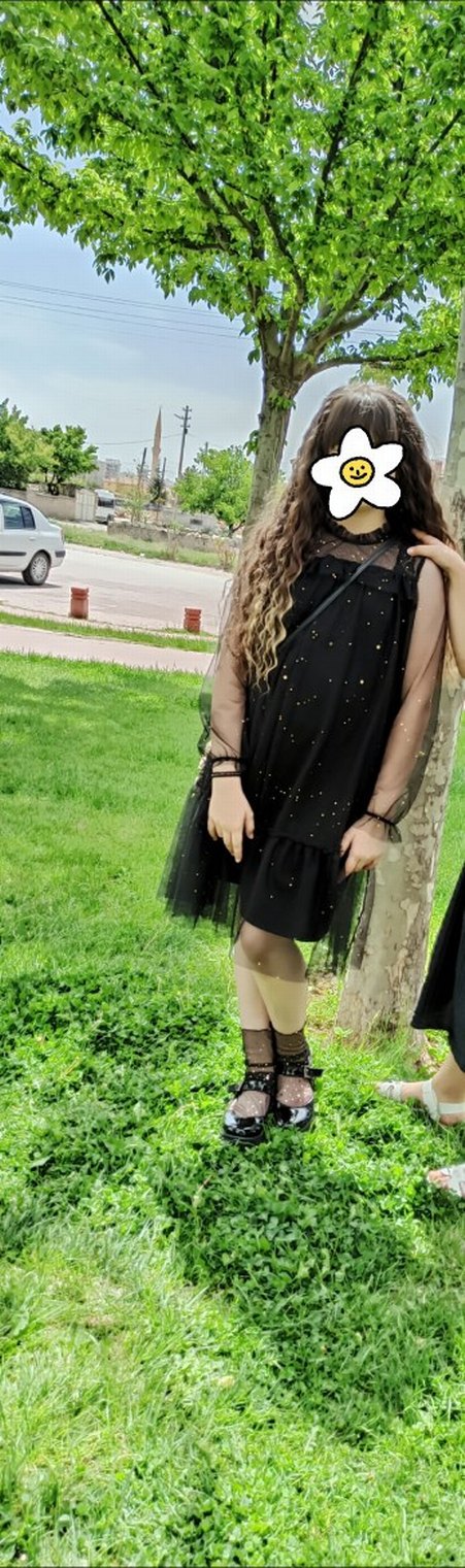 Siyah, Tüllü, bol kesim kız çocuk elbisesi. Yumuşak sentetik kumaştan, gotik ve trend görünüm sağlar. Sadece karne günü merasiminde giyildi tek seferlik 11 12 yaş