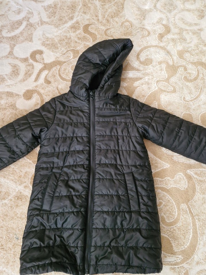 Kız Çocuk Siyah Uzun Kapüşonlu Mont