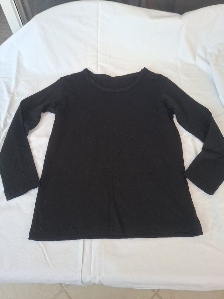 Kız çocuk tişörtü, yuvarlak yaka ve uzun kollu, bol kesimdir. Yumuşak kumaştan yapılmış, koyu renkte ve desensizdir. İÇLİK