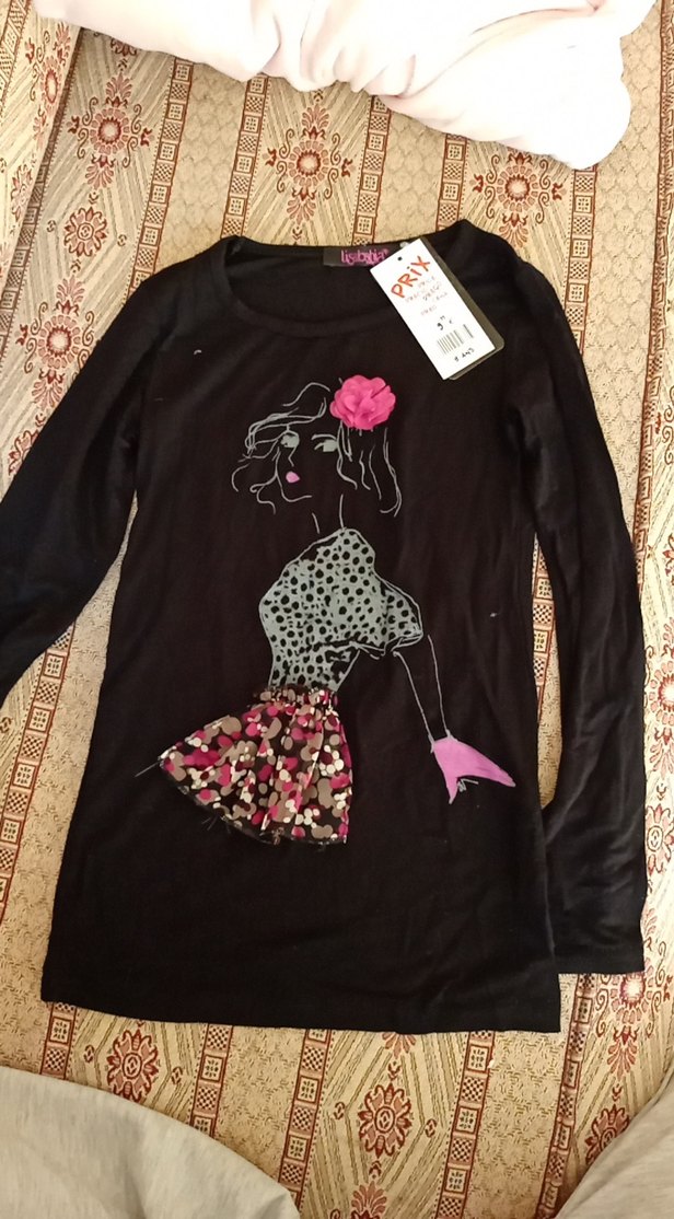 Siyah renkli, uzun kollu kız çocuk bluzudur. Bol kesim ve bisiklet yaka ile tasarlanmıştır. Baskılı ve fırfırlı detaylarıyla trend goth stilini yansıtır.