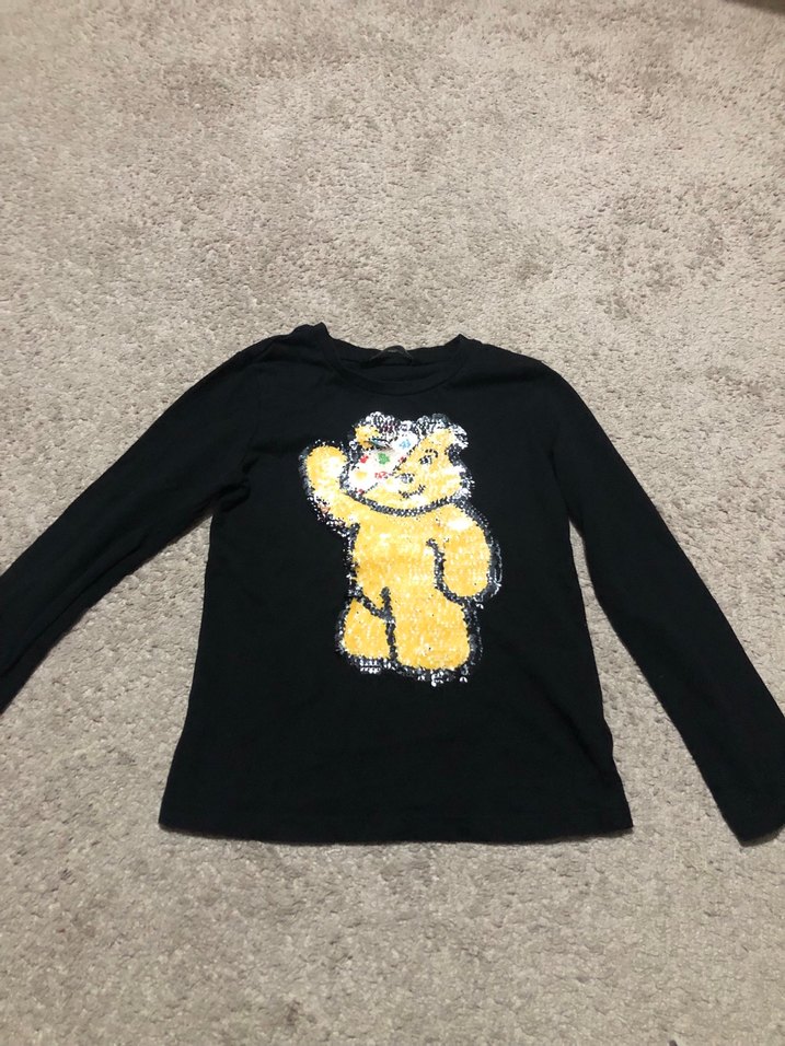 Kız çocuklar için siyah, uzun kollu, bol kesim ve yuvarlak yakalı. Yumuşak ve sıcak kumaştan, baskılı ve kürk detaylıdır.