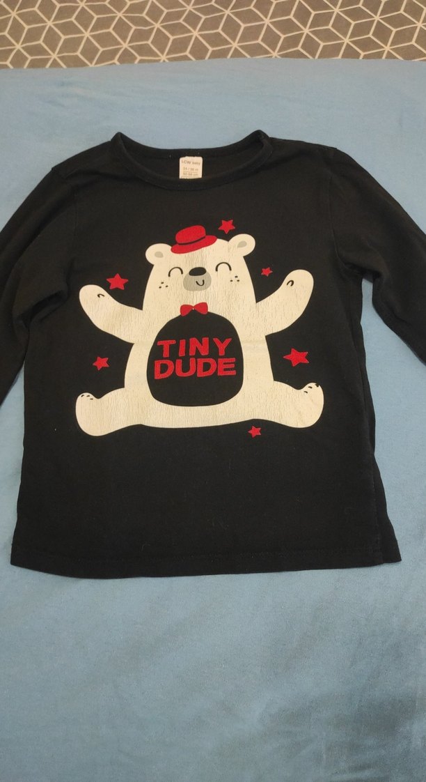 Kız çocuklar için siyah, uzun kollu, dar kesim tişört. Yuvarlak yaka ve sevimli baskılı ayı figürü bulunur. Yumuşak ve sıcak kumaş.