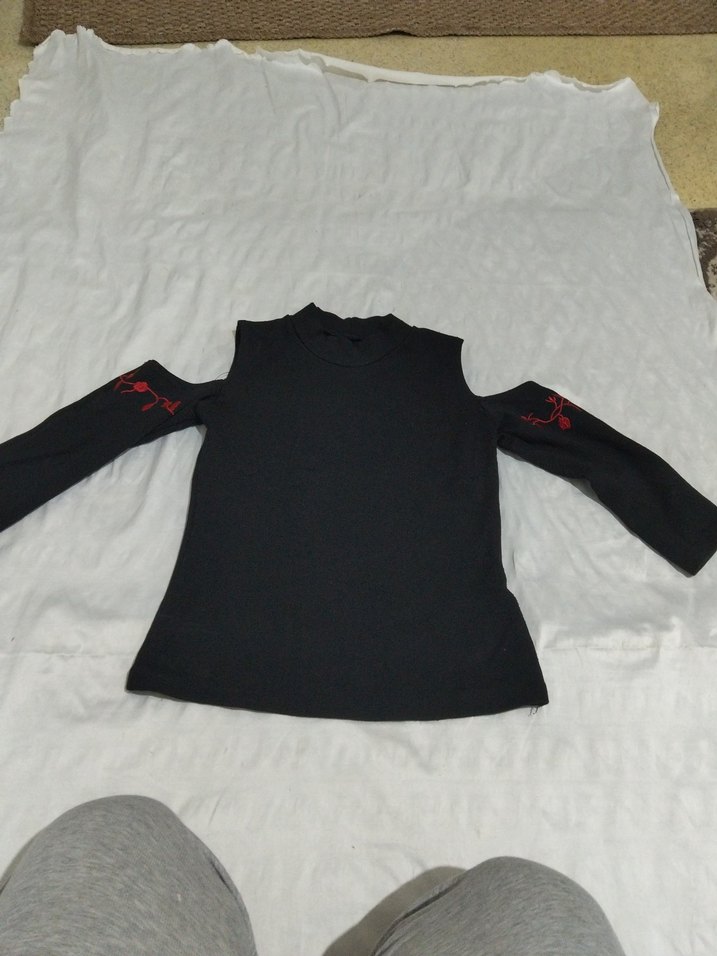 Kız çocukları için siyah, uzun kollu, fitted kesim tişört. Kırmızı baskılı detaylar ve omuzlardaki kürk dokunuşları ile goth tarzını yansıtıyor. Yuvarlak yaka ve yumuşak, sıcak kumaş rahatlık sağlar. 7.8 yaş etiketi kesilmiştir