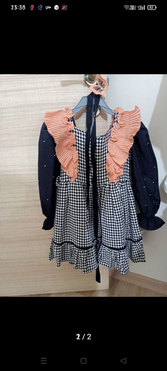 Kız Çocuk Siyah Uzun Kollu Nakışlı Elbise
