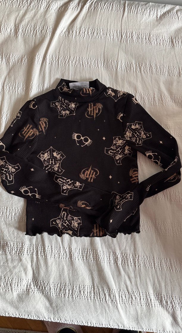 Kız çocukları için siyah, uzun kollu ve yüksek yakalı, örme kumaştan yapılmış, gotik desenli ve vücuda oturan bluz.