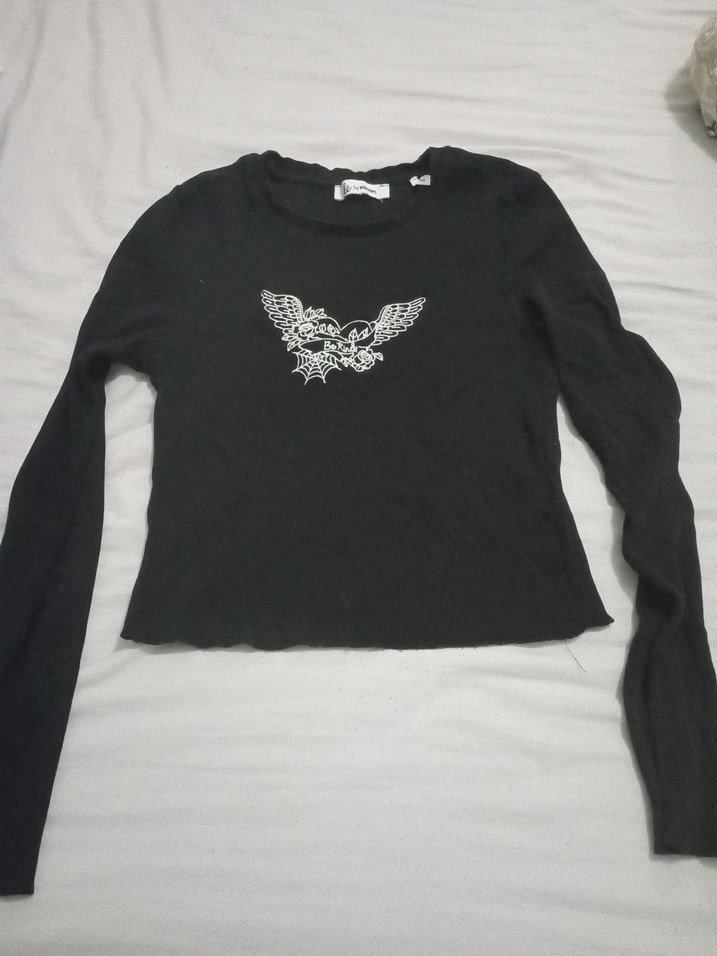 Kız Çocuk Siyah Uzun Kollu Örme Goth Tişört