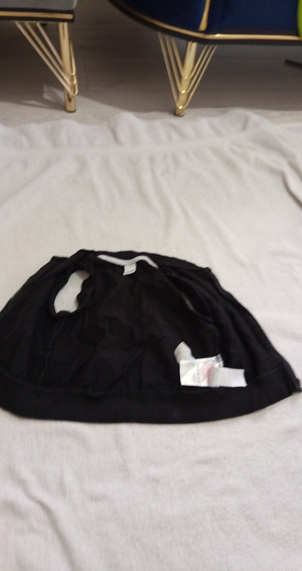 Siyah, sentetik kumaştan yapılmış, V yakalı, kolsuz ve cırt cırtlı kız çocuk yeleği, gotik tarzda.