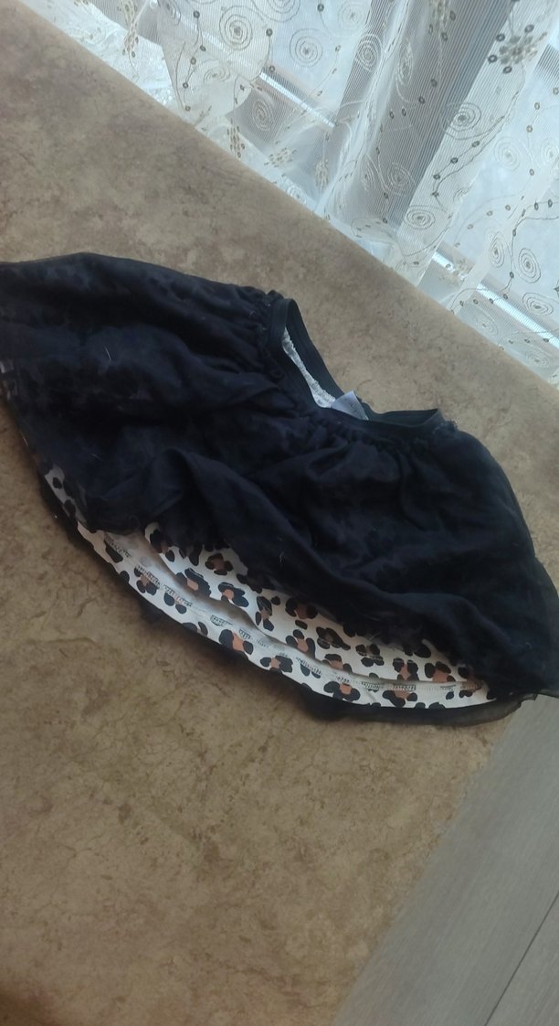 Sentetik kumaştan, volan detaylı, gotik tarzda siyah renkli, leopar desenli astarlı bol kesim kız çocuk eteği .