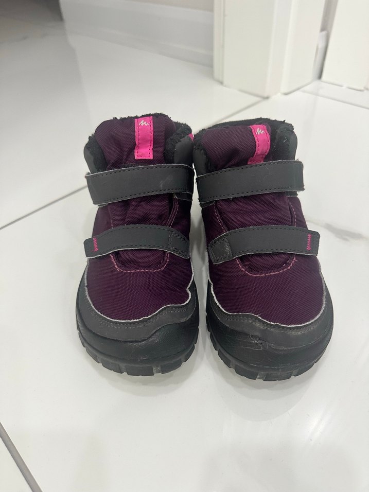 Kız çocukları için siyah kauçuk bot, siyah nimot pembe desenli, cırt cırtlı ve sağlam tabanlı rock punk tarzında.