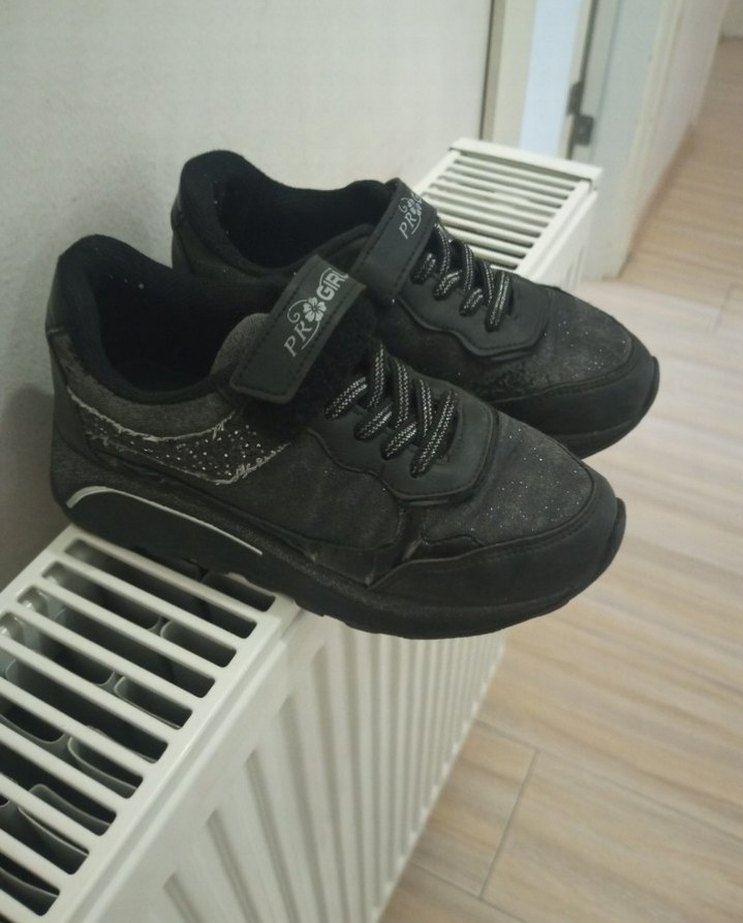 Kız çocukları için siyah ve gri tonlarda yılan desenli, cırt cırtlı sneakers. Kauçuk tabanlı, trend sokak stili için uygun.